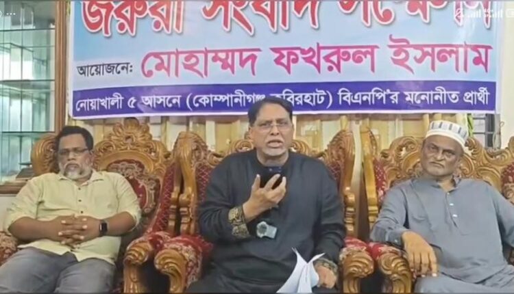 শুক্রবার বিকেলে নোয়াখালী-৫ আসনে বিএনপি মনোনীত প্রার্থী মোহাম্মদ ফখরুল ইসলাম এক সংবাদ সম্মেলনে এসব কথা বলেন।