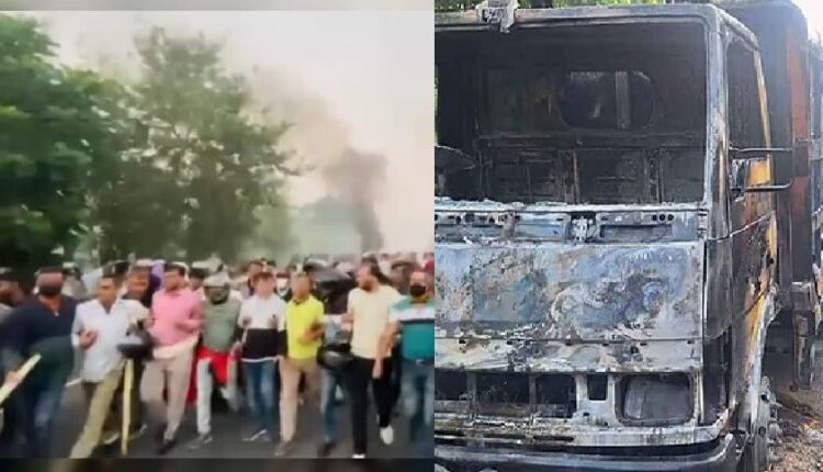 পদ্মা সেতুর সামনে অবরোধ করে ট্রাকে আগুন, ককটেল বিস্ফোরণ