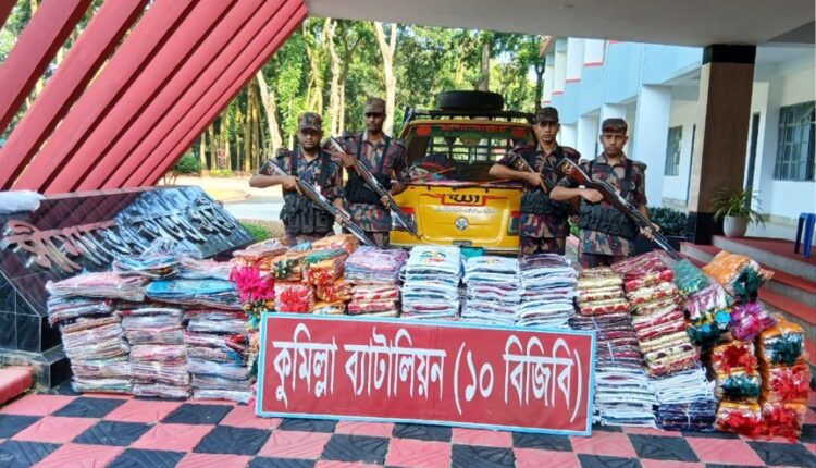 কুমিল্লা নগরীর মার্কেটগুলোতে অবাধে ঢুকছে ভারতীয় শাড়ি, কসমেটিক্সসহ অন্যান্য সামগ্রী। অফিসিয়ালি কোনো নিলামের ঘোষণা নেই, নেই সরকারি কোনো নথি। তবুও আইনশৃঙ্খলা বাহিনীর চোখ ফাঁকি দিয়ে হাজার হাজার পিস ভারতীয় শাড়ি থেকে শুরু করে নানা ভারতীয় পণ্য ঢুকে যাচ্ছে শহরের অভিজাত বিপণিবিতানগুলোতে। ফলে একদিকে যেমন সরকার হারাচ্ছে বিপুল পরিমাণ রাজস্ব। অপরদিকে, চ্যালেঞ্জের মুখে পড়ে অস্তিত্ব হারাতে বসেছে দেশে উৎপাদিত পণ্যগুলো। কিন্তু এ সকল বিষয়গুলো যাদের দেখার কথা তাদের নির্লিপ্ততা কিংবা রহস্যজনক নিরবতার কারণে এ প্রবণতা দিন দিন বাড়ছে।