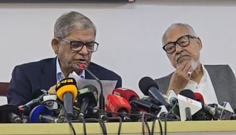 বৃহস্পতিবার (৪ নভেম্বর) বিকালে গুলশানে এক সংবাদ সম্মেলনে এ তথ্য জানান বিএনপির মহাসচিব মির্জা ফখরুল ইসলাম আলমগীর।