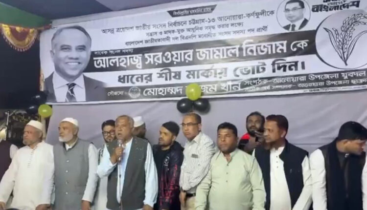 চট্টগ্রাম-১৩ (আনোয়ারা ও কর্ণফুলী উপজেলা) আসনের বিএনপি মনোনীত প্রার্থী সরওয়ার জামাল নিজাম আগামী ১২ তারিখ পর্যন্ত চাঁদাবাজি বন্ধ রাখার জন্য প্রকাশ্যে আহ্বান জানিয়েছেন।